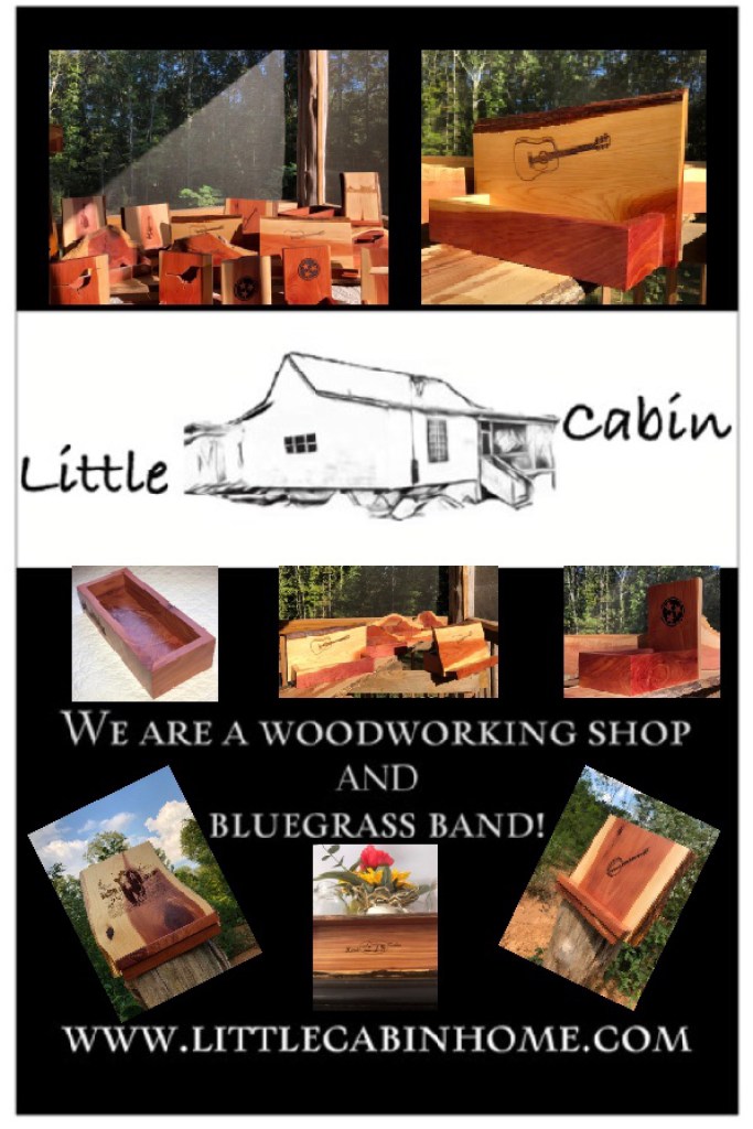 Little Cabin Home is the name of our music duo, and we are John Guin and Teresa Burrow. Additionally, Little Cabin Home is the name of John’s cabinet installation shop, and also his woodworking shop.
